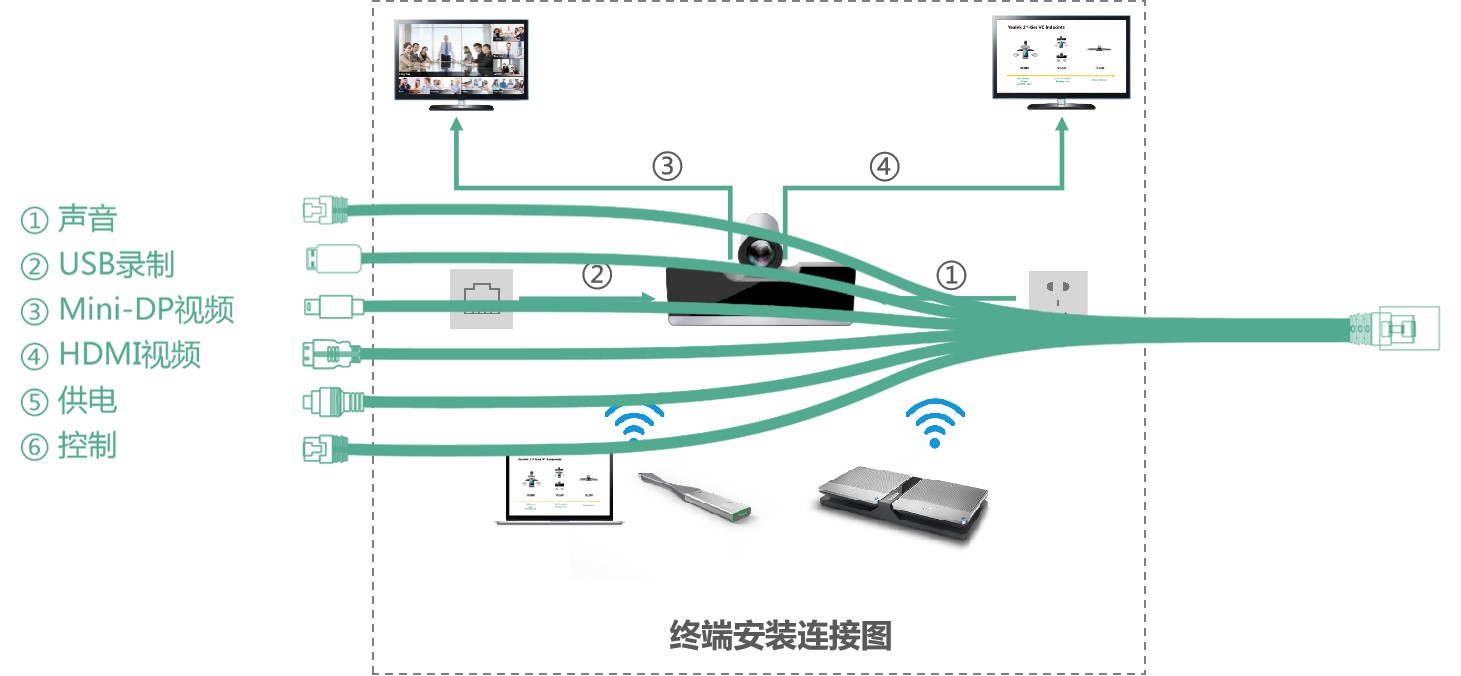 VC880+VCC22支持多角度取景;擁有豐富的音視頻物理接口,配備專業(yè)的RCA音頻輸入輸出接口,與調音臺及桌面鵝頸麥克風系統(tǒng)集成。采用分體式設計,貼合超大會場部署在控制室的需求,三線合一,降低布線難度與成本。